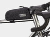 Eine leicht zugängliche Oberrohrtasche aus wasserdichten Materialien, die entweder mit zwei Schrauben oder den mitgelieferten Riemen befestigt werden kann.